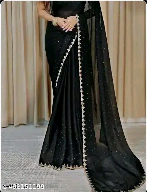 Fency Disener Chinnon Silk Pretty Sarees With New Fency Border With Blouse Piece.