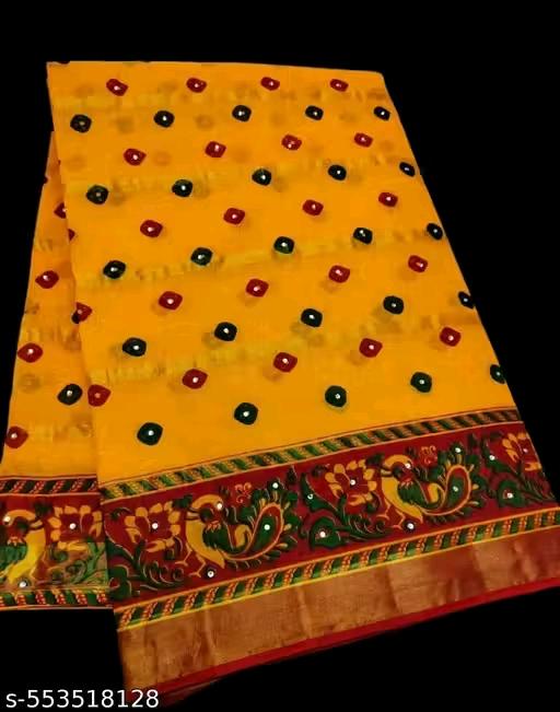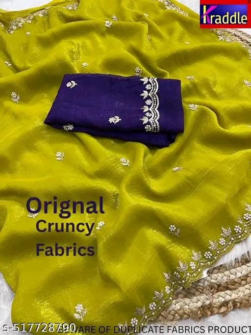 Fency Disener Chinnon Silk Pretty Sarees With New Fency Border With Blouse Piece.