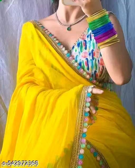 Women's Trending Yellow Georgette Saree with Lace Border || saree For Women || Haldi Saree For Women